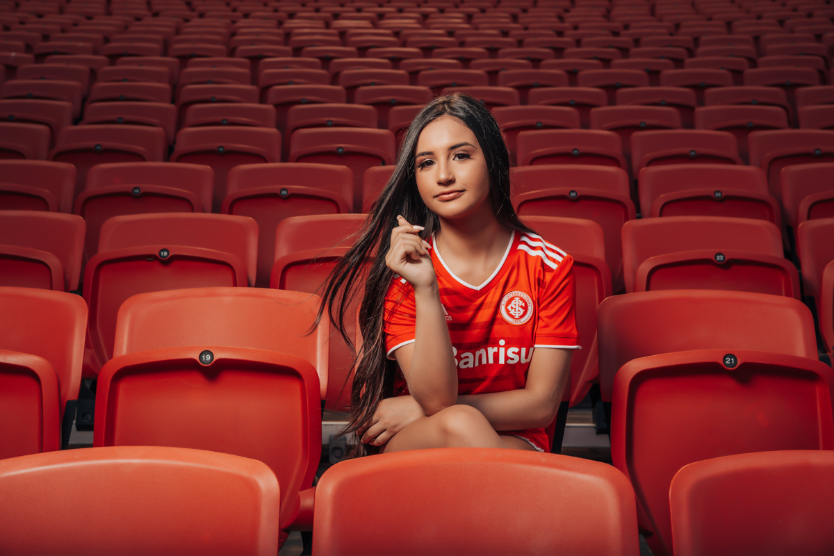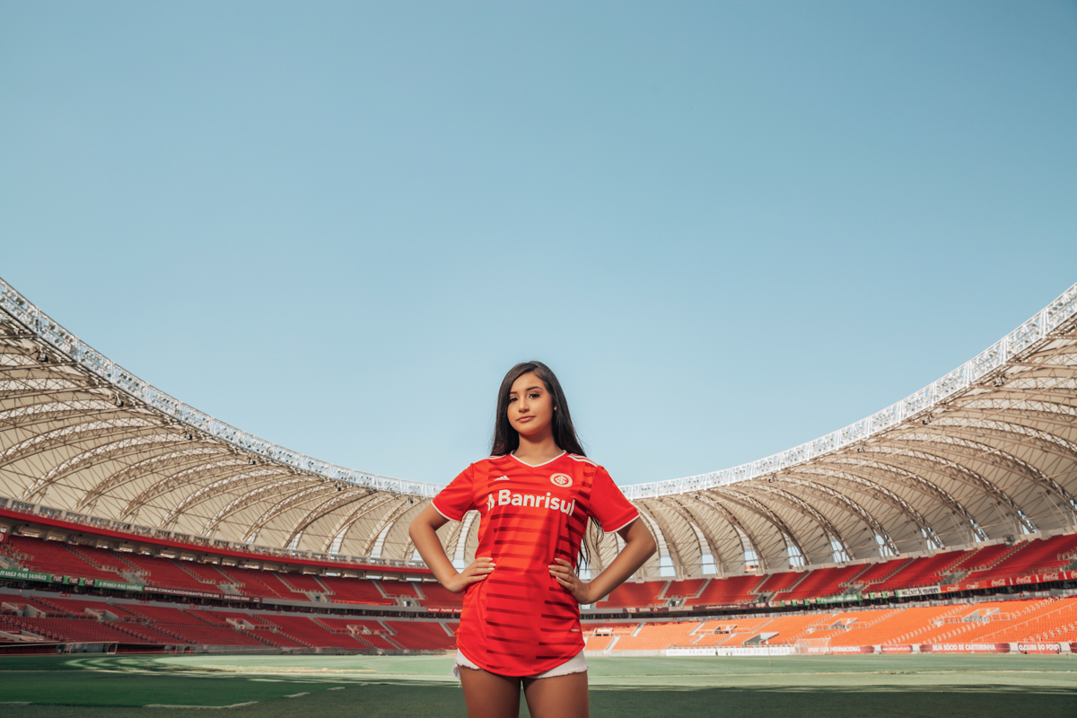 Um 15 anos diferente, com tema de muita paixão e sentimento, assim foi o ensaio de debutante da Giovana Fonseca, uma debutante colorada fanática pelo seu time, o Internacional, seu sonho era fazer fotos no estádio Beira-Rio em Porto Alegre - RS, deixando registrada toda sua paixão pelo seu time favorito. Resultado? Fotografias que transmitem seu sentimento e brilho nos olhos para quem vê. Agradecemos a confiança e esperamos você em breve para mais um dia de fotos!!